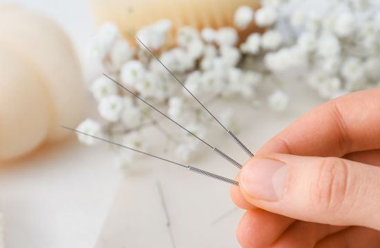 皮膚のごく浅い層に刺激を与えるため、極めて細く・繊細に作られています。また、美容鍼では髪の毛より細い約0.10~0.16mmほどの鍼を使用するため、痛みもほとんどありません。